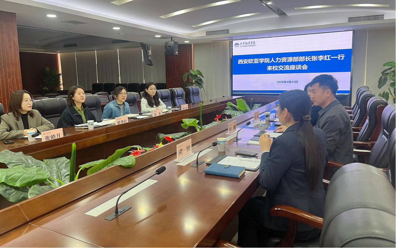 为加强校际人力资源管理工作交流,互学互鉴先进经验,推动人事管理与教师发展工作提质增效,2026年4月23日,西安欧亚学院人力资源部部长张李红一行4人莅临我校,就人事工作开展交流座谈。我校人力资源处副处长赵鹏、武娟,退休办公室主任兼薪酬福利科科长段敏参加座谈。